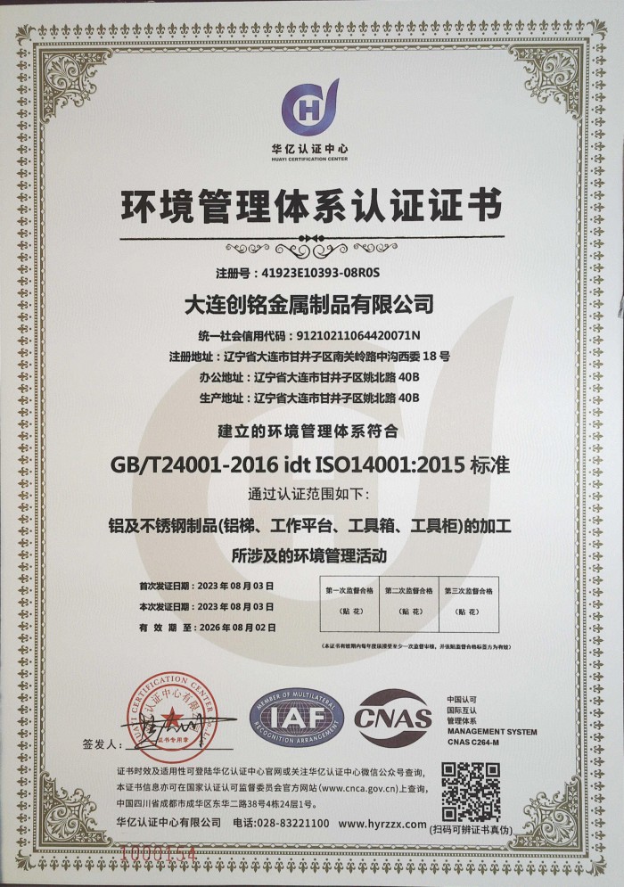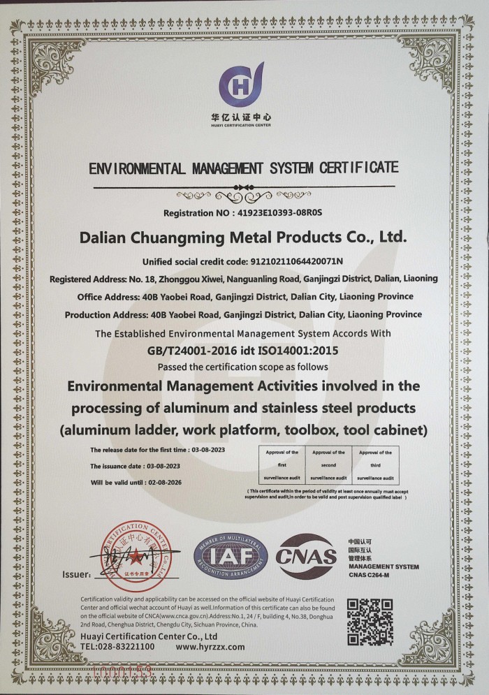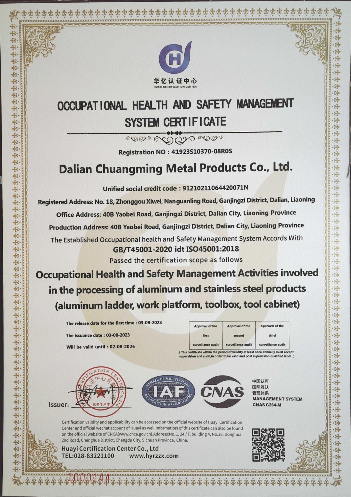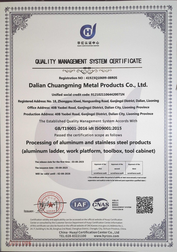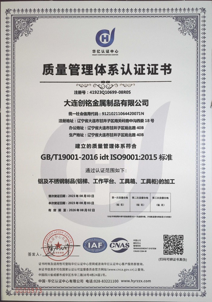 大連創(chuàng)銘金屬制品有限公司成立于2007年,我公司生產(chǎn)銷售各種登高工具,公司自成立以來,始終堅(jiān)持以人為本、誠(chéng)信立業(yè)的經(jīng)營(yíng)原則,薈萃業(yè)界精英,將國(guó)外優(yōu)秀的信息技術(shù)、管理方法及企業(yè)經(jīng)驗(yàn)與國(guó)內(nèi)企業(yè)的具體實(shí)際相結(jié)合,為企業(yè)提供全方位的解決方案,幫助企業(yè)提高管理水平和生產(chǎn)能力,使企業(yè)在激烈的市場(chǎng)競(jìng)爭(zhēng)中始終保持競(jìng)爭(zhēng)力,實(shí)現(xiàn)企業(yè)快速、穩(wěn)定地發(fā)展。