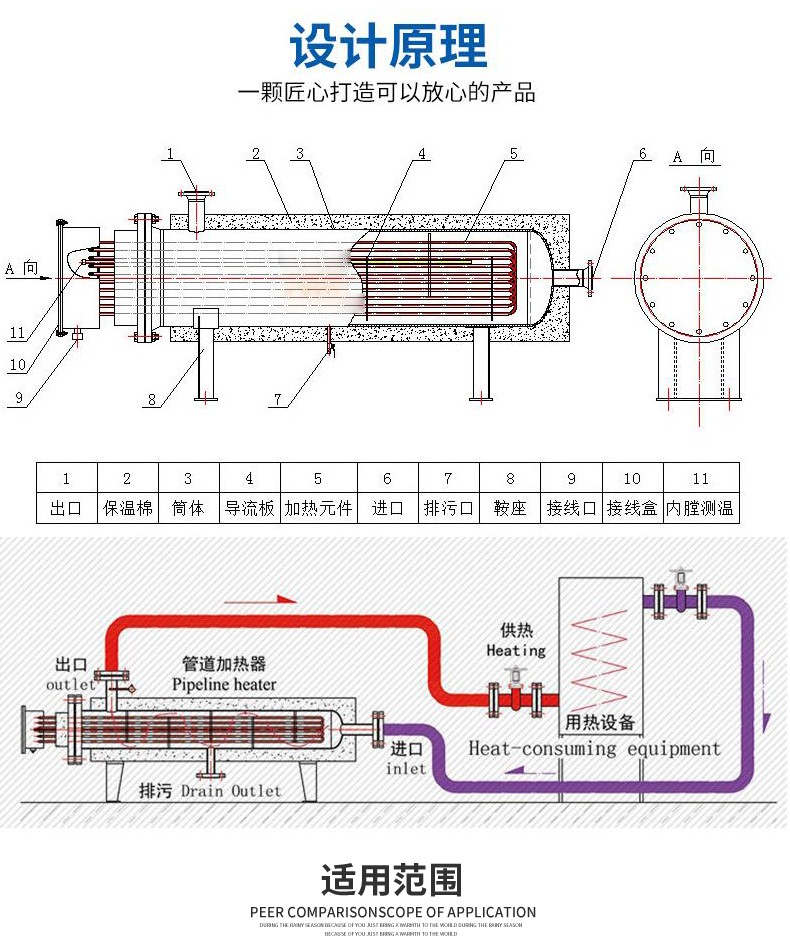可根據用戶的需要,設計多種不同類型的管道電加熱器。公司主營電加熱器產品:管道加熱器,管道電加熱器,導熱油加熱器,電加熱攪拌罐,夾套加熱攪拌罐,法蘭加熱器,風道加熱器,暖風機,重油加熱器,原油預熱加熱,烘房、烘干設備等